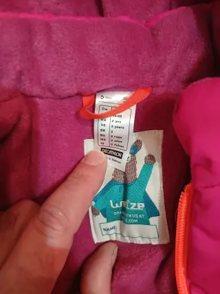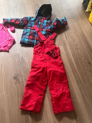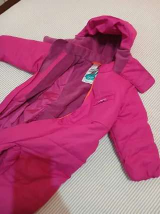 Mono de nieve en perfecto estado, supercalentito y cómodo. - Diseño con detalles en rosa y azul. - Cremalleras y hebillas visibles.