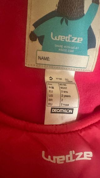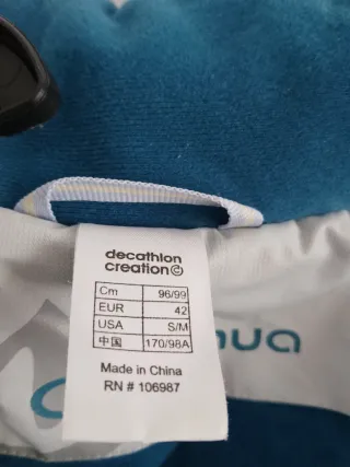 Mono de nieve de Decathlon Creation. - Talla EUR 42, USA S/M. - Medidas en cm: 96/99. - Fabricado en China.
