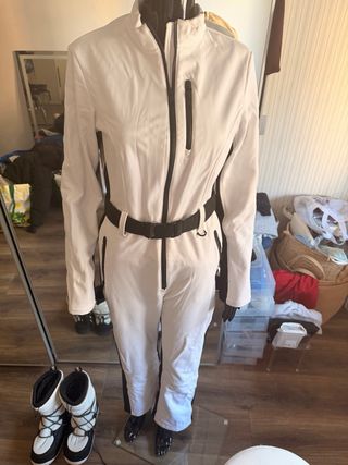 Mono de esquí de la colección Zara Sky Luxur. Un diseño elegante y funcional para la montaña. Talla L pero es una m-s real - Color blanco con detalles en negro. - Incluye cinturón negro a juego. - Cremalleras frontales y en bolsillos. En venta aparte tambien las botas a conjunto !!