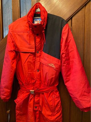 Mono de esquí original de los años 80–90 de la marca EXO, con estampado rosa y azul muy característico de lone-piece con cinturón, capucha y bolsillos, ideal tanto para esquiar como para looks retro, après-ski o festivales. Está en muy buen estado para su edad: cremalleras y botones funcionan perfectamente, el forro interior está limpio y las gomas conservan elasticidad. Talla: EU 46 (Aproximadamente L mujer o M–L unisex) Prenda auténtica vintage, cada vez más difícil de encontrar en este estado y con este diseño. Si buscas un mono de esquí retro que destaque, este es perfecto. ❄️