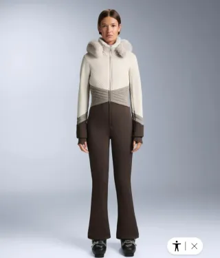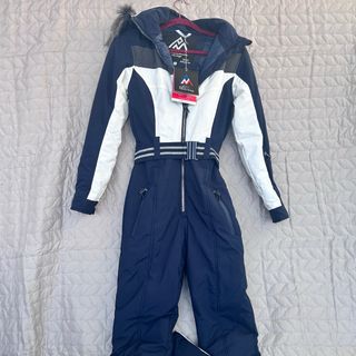 Mono de esquí elegante y funcional, perfecto para la montaña. - Diseño ajustado con cinturón. - Capucha con detalle de pelo. - Cremallera frontal. - Puños con abertura para pulgar. Con etiquetas