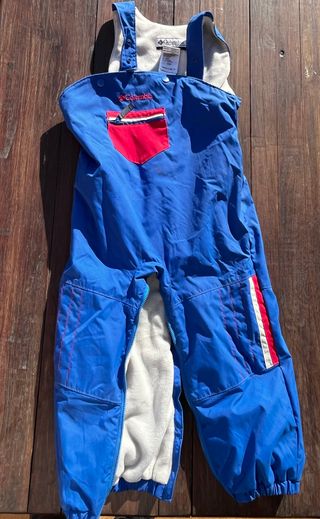 Conjunto de esquí Columbia para niños de 5 a 6 años. Ideal para mantenerse abrigado y seco en la nieve. incluye botas y manoplas. mono de esqui Quechua incluye botas y manoplas. - Color azul con detalles en rojo y blanco. - Bolsillo frontal con cremallera. - Forro interior suave y cálido.