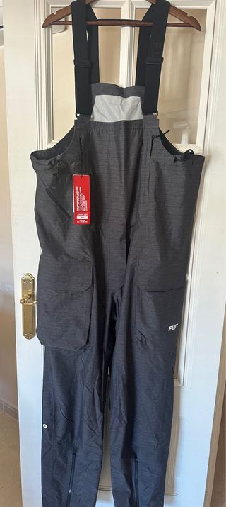 Pantalón de esquí negro con forro interior naranja. - Talla M. - Cremallera frontal. - Tirantes ajustables.