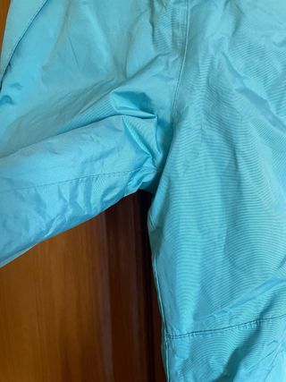 Mono de esquí de color azul claro, talla 12. - Capucha integrada. - Cierre de cremallera frontal. - Puños ajustables con velcro.