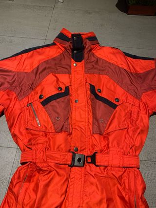 Mono de esquí de una pieza en color rojo con detalles en blanco y naranja. - Talla 12 años. - Tiene capucha incluida, pero se puede “recoger y guardar” en la parte del cuello. - Está casi nuevo, el color no lo ha perdido ya que las pocas veces que se ha utilizado, se ha lavado en la tintorería. - Donde las piernas, son de doble capa para las botas de esquí o snowboard para que no entre nieve. - Por cierto, precio negociable.