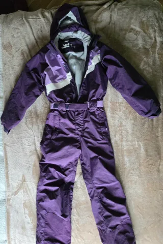 Mono de nieve para niña en color morado, ideal para mantenerla abrigada y seca en sus aventuras invernales. Diseñado para ofrecer comodidad y protección. - Talla 6/7 años (114/121 cm). - Diseño con cinturón ajustable. - Capucha integrada.
