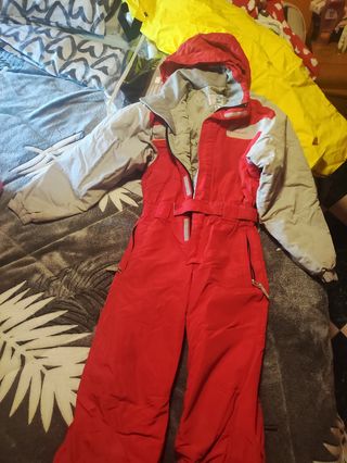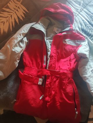 Mono esqui marca Decathlon para altura 1,62 cm (medidas en la foto). se ajusta a la bota. lleva capucha incorporasa en el cuello. argolla en bolsillo para forfait. Cinturón ajustable muy cómodo, abriga bastante. Ideal para aprender. Recogida Mostoles o Madrid zona Centro o metro Embajadores