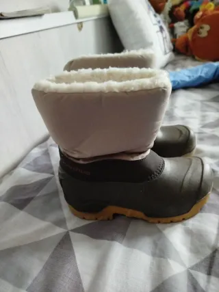 Botas de nieve Quechua para mantener los pies calientes en invierno talla 30/31 - Color marrón y beige. - Forro interior de pelo sintético. - Suela de goma. Mono azul talla 5 años Regalo guantes