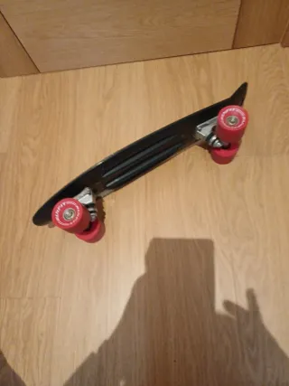 Monopatin Penny tabla de plástico antideslizante y ruedas llamativas.Medidas 57 cm de largo. Nuevo con 4 días de uso Solo entrego en persona - Tabla negra con superficie antideslizante. - Ruedas de color rojo. - Logo blanco en la tabla(Runfit》