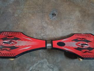 Monopatín Waveboard de dos ruedas con diseño articulable. - Plataformas con superficie antideslizante. - Diseño en color rojo y negro. Un monopatín de dos ruedas con tabla articulable se llama comúnmente Waveboard, Casterboard, J-board o RipStik, y consiste en dos plataformas separadas conectadas por una barra de torsión que permite girar y moverse con un movimiento ondulante Como nuevo, prácticamente no se ha usado. Waveboard Casterboard J-board RipStik Tapla patin