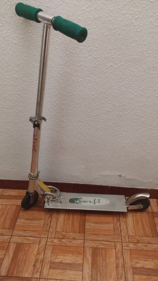 Patinete de dos ruedas. Tiene funda algo desgastada.