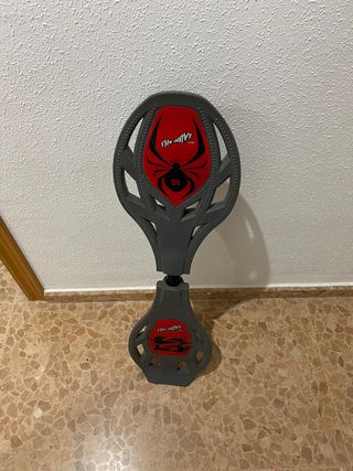 Vendo este waveboard Oxelo, que está en buen estado. Es un modelo de color negro y rojo. - Dispone de dos ruedas. - La plataforma es de plástico resistente. - Tiene un diseño con dibujos en la parte superior.
