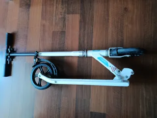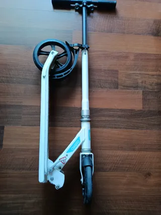 Patinete infantil Oxelo, en buen estado. Ideal para niños y niñas. - Color blanco y morado. - Ligero y fácil de manejar. - Perfecto para desplazamientos cortos.