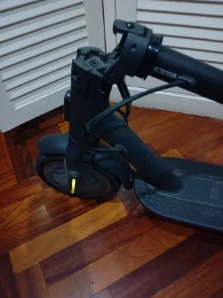 Con apenas 64 km de uso real, está en perfecto estado, usado 10 veces. Batería en perfecto estado. Funda protectora original, timbre, bolsa de manillar acoplable y cargador original Peso 12,5 kg, carga máxima 100kg, velocidad máxima 25 km/h y autonomía de 25 km/carga. Tiene 3 modos de velocidad peatón,normal y rápido. Opción a 3 ruedas de repuesto originales sin estrenar por 15 euros más.
