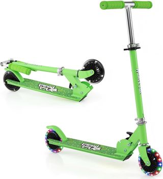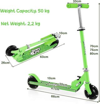 SIN ESTRENAR. KOMFOTTEU Patinete para Niños, Patinete Infantil con 2 Ruedas LED y Freno, Monopatín Plegable con 3 Alturas Ajustables, Scooter de Aluminio con Carga 50 kg, para Niños Dimensiones del producto : 66 x 33 x 80 cm