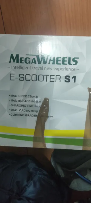 Monopatín eléctrico MEGAWHEELS modelo E-SCOOTER S1. Diseñado para una experiencia de viaje inteligente. - Velocidad máxima: 23 km/h - Autonomía: 8-10 km - Tiempo de carga: 3 horas - Carga máxima: 90 kg - Gradiente de escalada: 20 grados