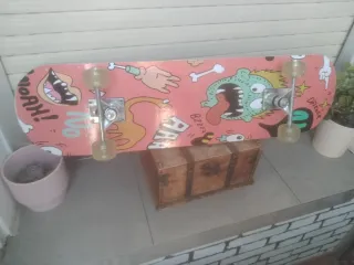 Monopatín con un diseño llamativo y original, perfecto para añadir un toque de estilo.
