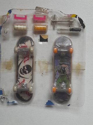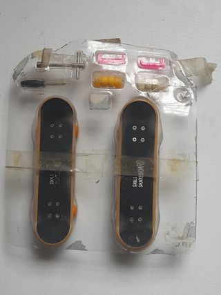 Set de 2 fingerboards marca Skill Skateboard en su embalaje, y con recambios. Están en buen estado, aunque el plástico del blíster presenta algunas marcas de desgaste. Incluye dos monopatines y accesorios. Ideales para coleccionistas o para empezar a practicar este deporte.