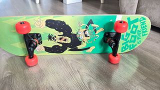 Vendo monopatín en buen estado. Es de color rojo y tiene ruedas de color verde menta. - Perfecto para principiantes. - Ideal para paseos cortos. - Ligero y fácil de transportar.