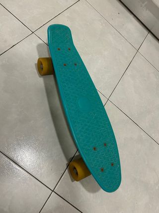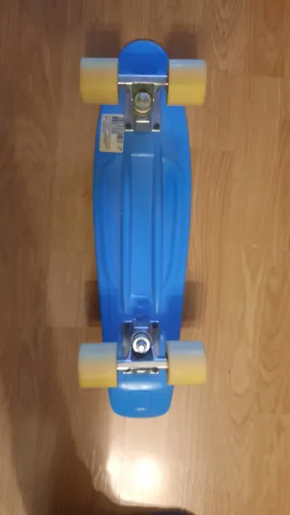 Monopatín tipo Penny Board de color azul. - Ruedas de color claro. - Diseño clásico de Penny Board. - Muy poco uso