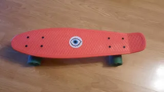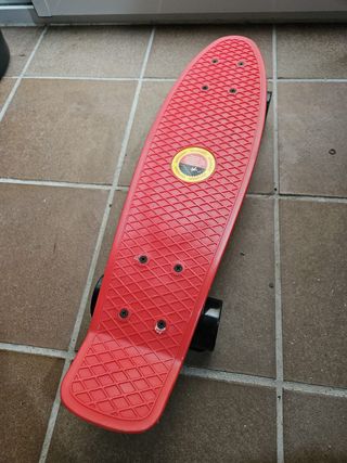Monopatín tipo Penny Skate de color rojo, perfecto para desplazarse de forma divertida. - Tabla con superficie antideslizante. - Ruedas de color verde. - Diseño compacto y ligero.