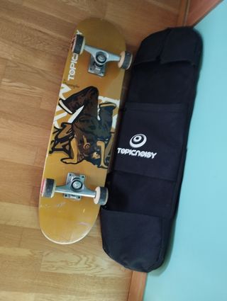 Monopatín en buen estado, listo para usar. - Ideal para principiantes o para uso recreativo. - Se encuentra en buenas condiciones, con un golpecito en un lateral. - Listo para disfrutar. - Incluye funda.