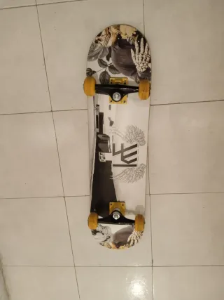Monopatín / Skate, con prácticamente NADA de uso. Tiene algún pequeño desgaste en el morro y un lateral (se ve en las fotos) por roces contra la pared donde ha estado guardado.