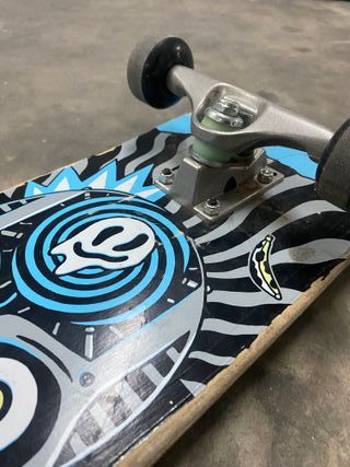 Skate board con un diseño llamativo y colorido. Ideal para hacer trucos. - Diseño gráfico con motivos circulares y líneas. - Incluye un sticker de plátano. - Truck metálico plateado.