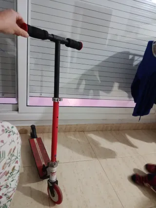 Patinete de dos ruedas en color rojo. - Manillar ajustable. - Ruedas de goma. - Plataforma antideslizante.