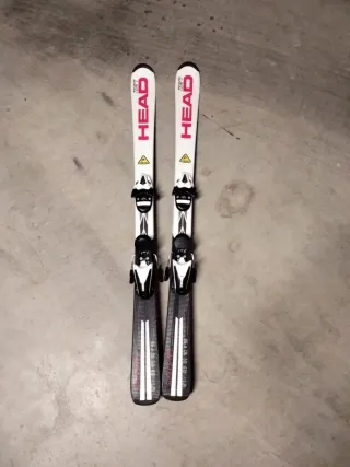 Esquís Head Team de 127 cm. - Esquís de color blanco con detalles en rojo y negro. - Fijaciones negras y blancas. - Diseño deportivo.