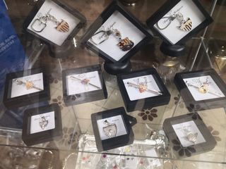 Verios modelos de llavaros, pisa corbatas y anillos de fútbol. Betis, Sevilla, Real Madrid y Barcelona, en plata de ley. Venta por liquidacion cierre de tienda