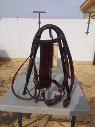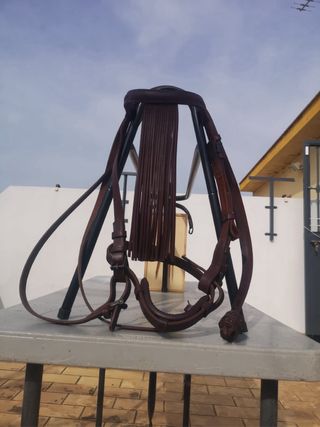 Vendo cabezal de cuero para caballo. Está en muy buen estado. - Cabezal de cuero marrón. - Incluye riendas. - Diseño clásico. - Solo tiene una puesta, practicamnete nuevo.