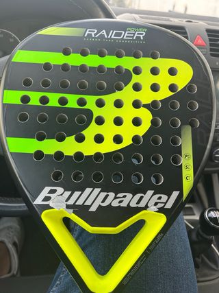 Pala de pádel Bullpadel modelo Raider Power. - Pala de pádel. - Diseño en negro y verde lima. - Composición de carbono. Desperfectos que no influyen en su uso. Buena pala para nivel principiante.