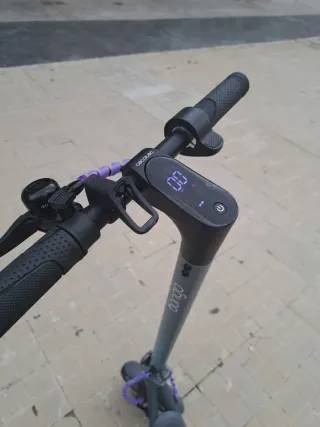 Patinete eléctrico Bongo en color gris con detalles en azul. - Manillar plegable. - Rueda delantera y trasera. - Freno delantero y trasero. Comprado en junio 2025. Lo vendo por la nueva ley. Algo negociable
