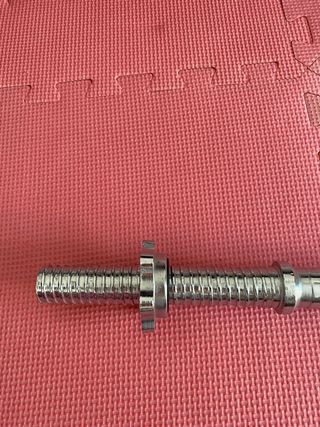 En persona no realizó envío Telf 640906865 Barra de acero plateado, ideal para ejercicios de fuerza. En tres de 40x120x28m - Diseño estriado para un mejor agarre. - Mecanismo de cierre con rosca. Extremadura Montijo Badajoz España