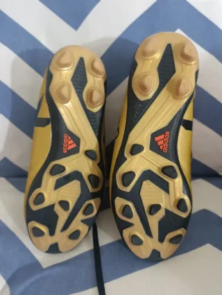 Botas de fútbol Adidas en color dorado. - Diseño deportivo. - Cierre con cordones negros. - Suela con tacos.