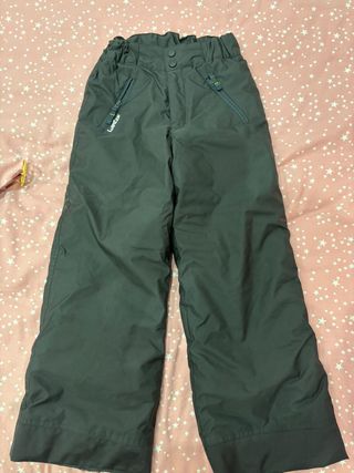 Pantalón de nieve para niño de la marca Wedze, ideal para disfrutar de la montaña. Talla 131-140. Ideal para 8-9 años. Usado dos veces. - Color gris oscuro. - Cintura elástica con cierre de botones. - Bolsillos laterales con cremallera.