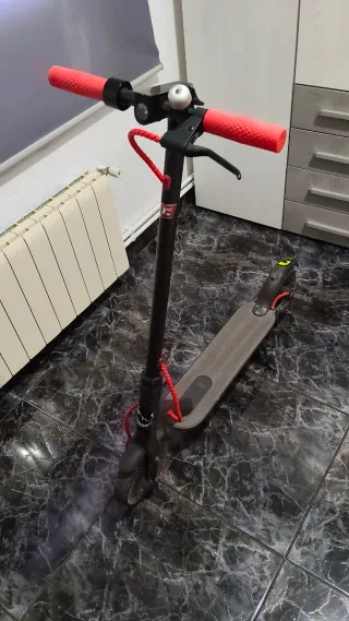Patinete eléctrico Xiaomi M365 en color negro y gris. Ideal para desplazamientos urbanos. -Ruedas delantera y trasera macizas,antipinchazos. -Bateria en buen estado - Puños de goma rojos. - Fundas de Cables rojo -Cargador.