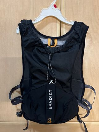Mochila ligera y funcional para trail running. - Capacidad de 5 litros. - Color negro. - Diseño tipo chaleco para mayor comodidad. - No incluye la bolsa de hidratación