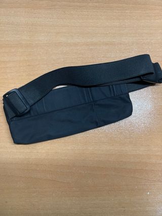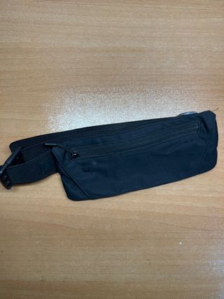 Riñonera negra de Decathlon, ideal para llevar tus pertenencias mientras corres o haces deporte. (Móvil y llaves) - Compartimento principal con cremallera. - Correa ajustable.