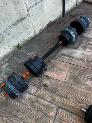 Pack de pesas para entrenamiento de fuerza con un peso total de 40 kg. Ideal para tonificar y ganar músculo. - Incluye barra y discos. - Mangos de la barra con agarre antideslizante. ✅Más art. deportivos en mi perfil. ✅Monta tu gym en casa y ponte fuerte, ganando en tiempo y bienestar. Crea tu lote , pack descuento de hasta el 60 % de su precio original. dominadas amazon mma Multiestacion Banco de pesas pesa rusa Press banca militar Fitness gym gimnasio musculación estación entreno bíceps tríceps dips dorsal hombros discos mancuernas barra z rack Romana rutina rural oposiciones físicas mosso d’Esquadra bombero guardia urbana