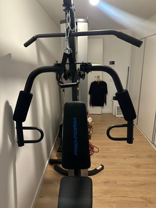 Vendo multiestación de musculación marca ProForm en muy buen estado, apenas usada. Permite entrenar todo el cuerpo: pecho, espalda, hombros, brazos y piernas (press de pecho, jalón dorsal, poleas y extensión de piernas). Está perfecta, sin roturas ni desgaste. Funciona todo correctamente y es muy suave. Ideal para casa y evitar pagar gimnasio. Muy robusta y estable. Se puede ver y probar sin compromiso. Se vende por falta de uso.