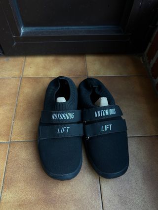Slippers para gimnasio Notorious Lift en color negro. Están prácticamente nuevas, se venden por falta de uso. NO LEER: Zapatillas powerlifting, barefoot, Slippers, SBD, Notorious Lift, Strength Shop, zapatillas peso muerto