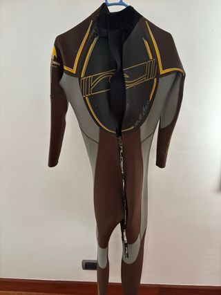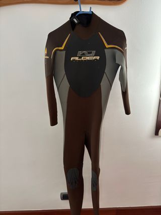 Neopreno Alder de manga larga y pernera larga. Ideal para deportes acuáticos. - Color principal marrón. - Paneles laterales en gris. - Detalle de color amarillo en hombros. - Zona del pecho en negro con logo Alder. - Rodilleras reforzadas. - Incluyó chapines y manoplas.