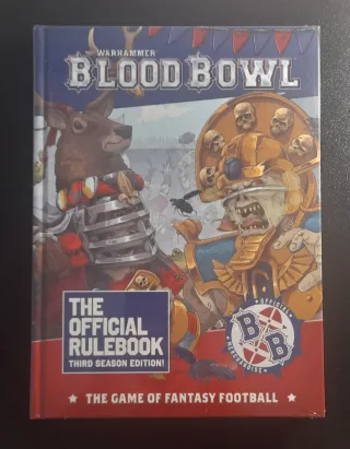 Libro de reglas oficial de Warhammer Blood Bowl, tercera temporada, en inglés. Sin abrir.(Más cosas de Blood Bowl en mi perfil)