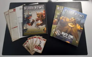 Conjunto de reglas y suplementos para el juego de miniaturas Blood Bowl 2016. En inglés, se incluyen cartas y hojas de referencias.(Más cosas de Blood Bowl en mi perfil)