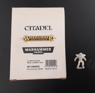 Dos miniaturas de Blood Bowl de 2a edición 1988. Un blitzer orco despintado y un jugador estrella nunca pintado. 100% GW no recast. (Más cosas de Blood Bowl en mi perfil)