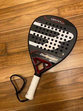 Pala de pádel Bullpadel Vertex 03 Junior, diseñada en colaboración con Juan Tello. Ideal para jugadores jóvenes hasta 12 años aproximadamente. - Línea Junior. -La pala está en muy buenas condiciones, tiene marcas leves en la parte superior ( ver foto 5 ) - Protector de silicona rugoso y overgrip nuevos sin estrenar. - Funda de protección con bandolera para transportar la pala incluida. - No negociable.
