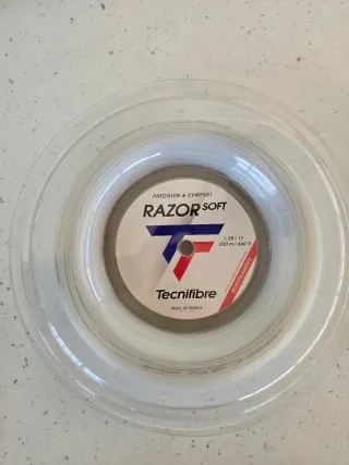 Cuerda de tenis Tecnifibre Razor Soft. - Calibre: 1.25 mm / 17 - Longitud: 200 m / 660 ft - Color: Blanco - Tipo: Monofilamento - Fabricado en Francia