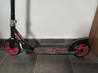 Patinete Oxelo con ruedas rosas y manillar negro. - Ruedas de color rosa. - Manillar ajustable en altura. - Plataforma con diseño gráfico.